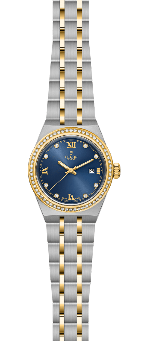 Blue. Applied Roman numerals. Date at 3 o’clock